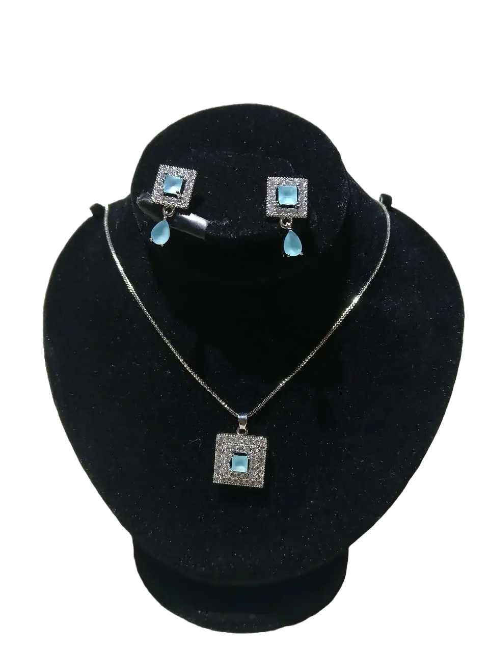 Crafted with a fine silver-tone chain and detailed stonework, this jewelry set exudes modern luxury. Whether you're attending a formal event or dressing up for a special occasion, this set will undoubtedly complement your style with its chic, contemporary flair.