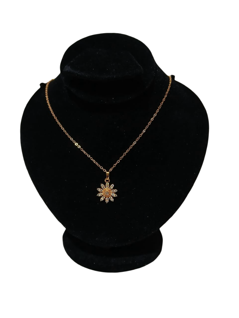 Floral Design: A beautiful flower-shaped pendant adorned with sparkling stones for a graceful and feminine look.
