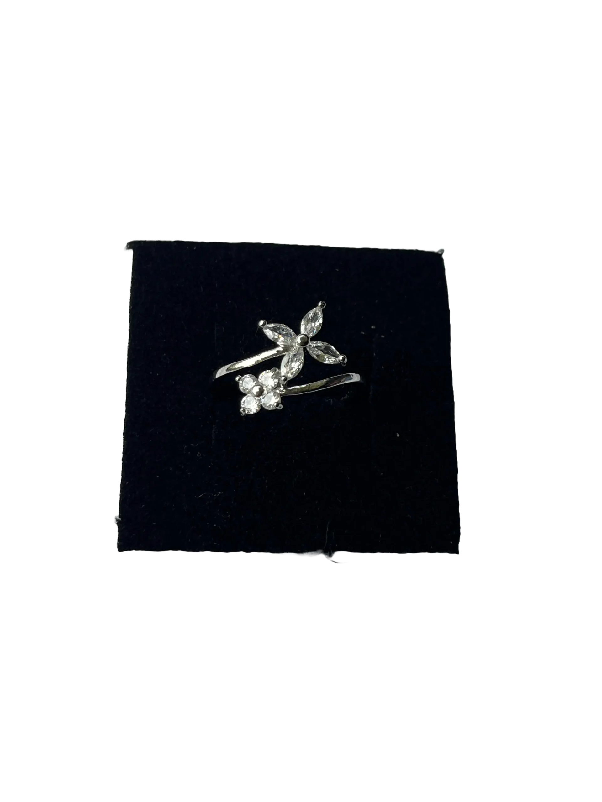 Add a touch of elegance and charm to your jewelry collection with the Silver-Tone Floral Gemstone Ring. This stunning ring features a floral design, with sparkling gemstones arranged in the shape of delicate flower petals. Set in a sleek silver-tone band, the design creates a refined, minimalist look that enhances any outfit.