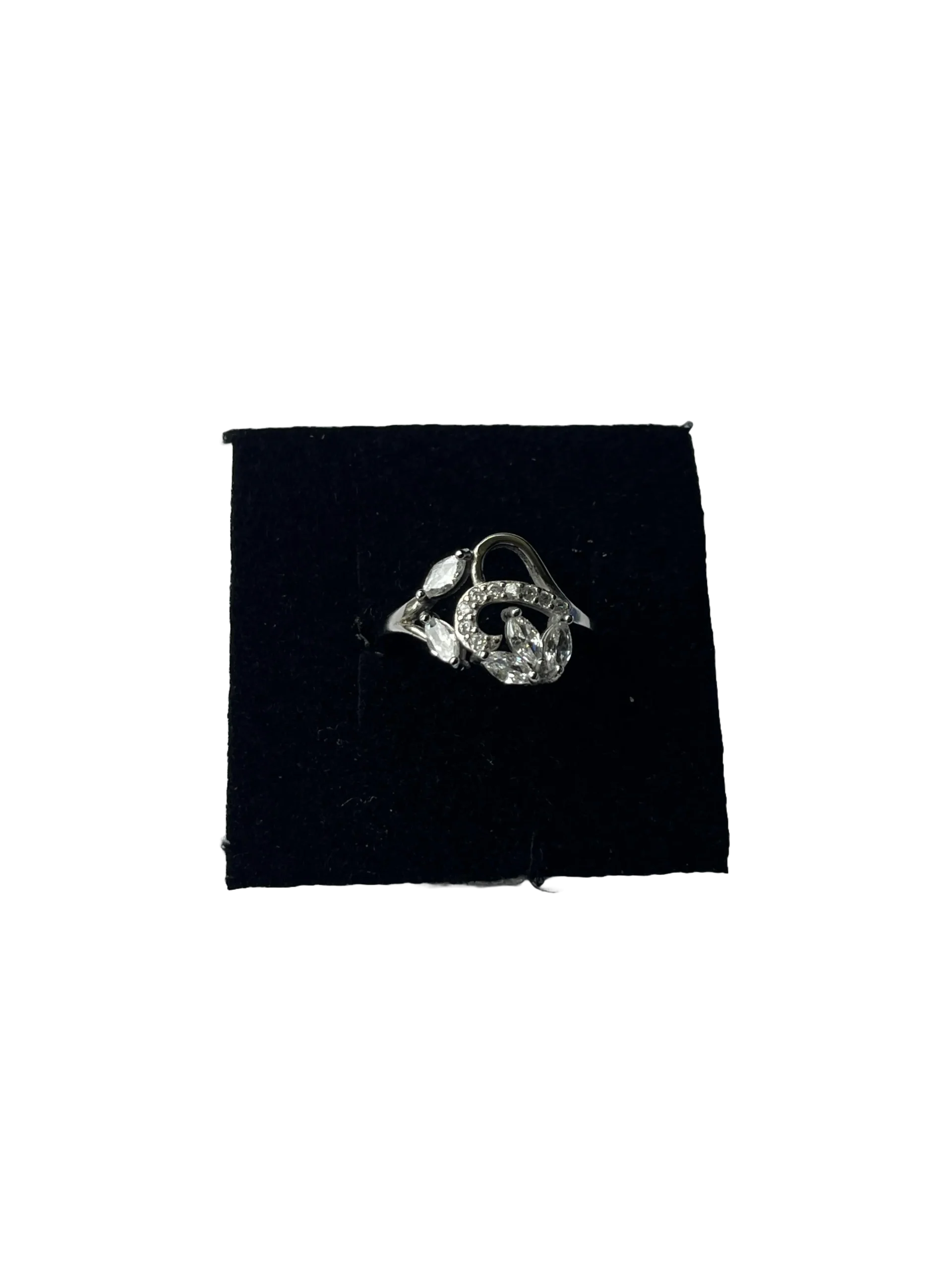 With its intricate design and sparkling accents, this ring is sure to catch the light and draw attention, offering a timeless appeal that complements both evening wear and special occasions.