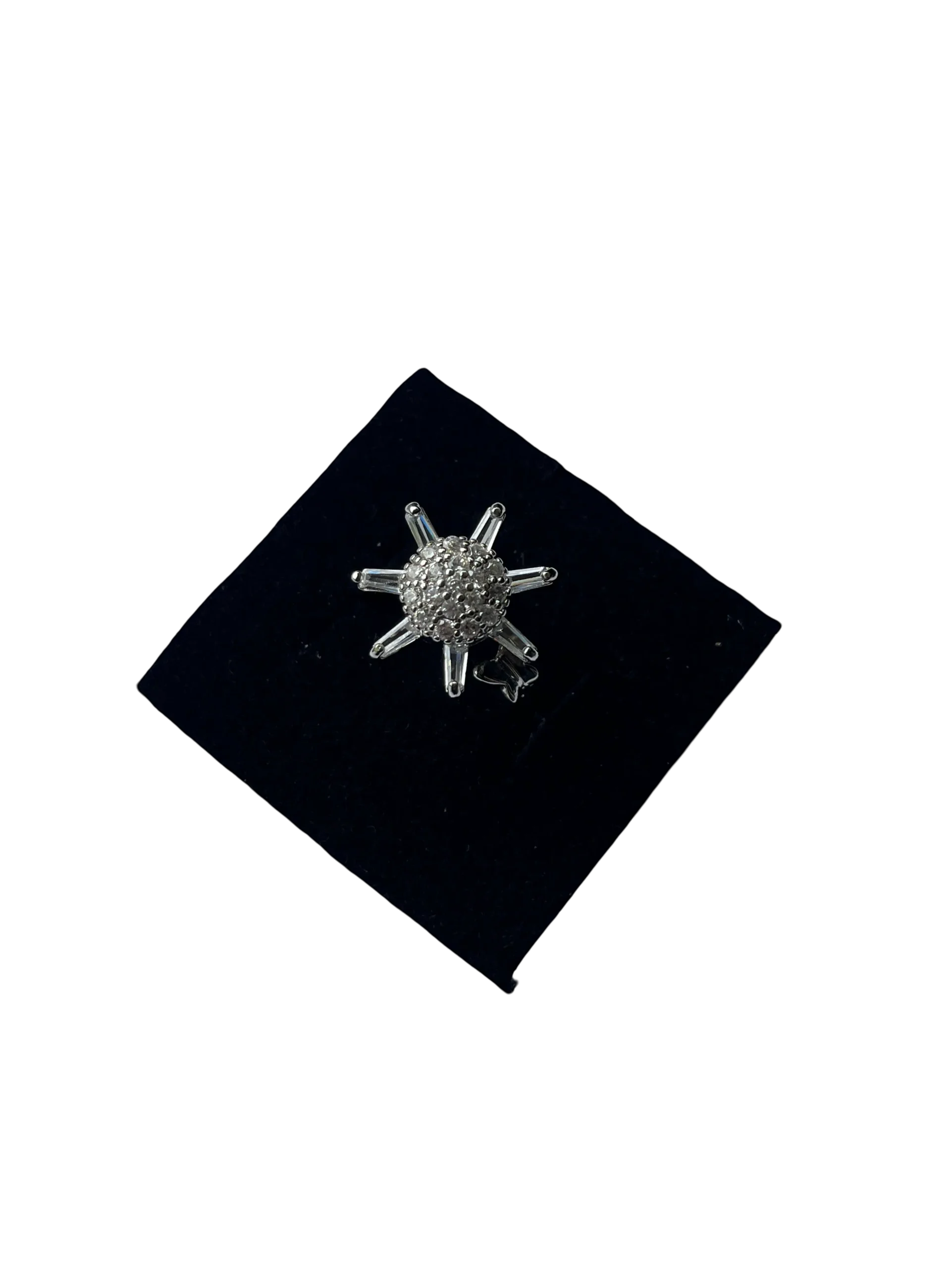 This stunning Silver-Tone Starburst Gemstone Ring features a playful starburst design with sparkling stones at the center, offering a unique and elegant addition to any jewelry collection.